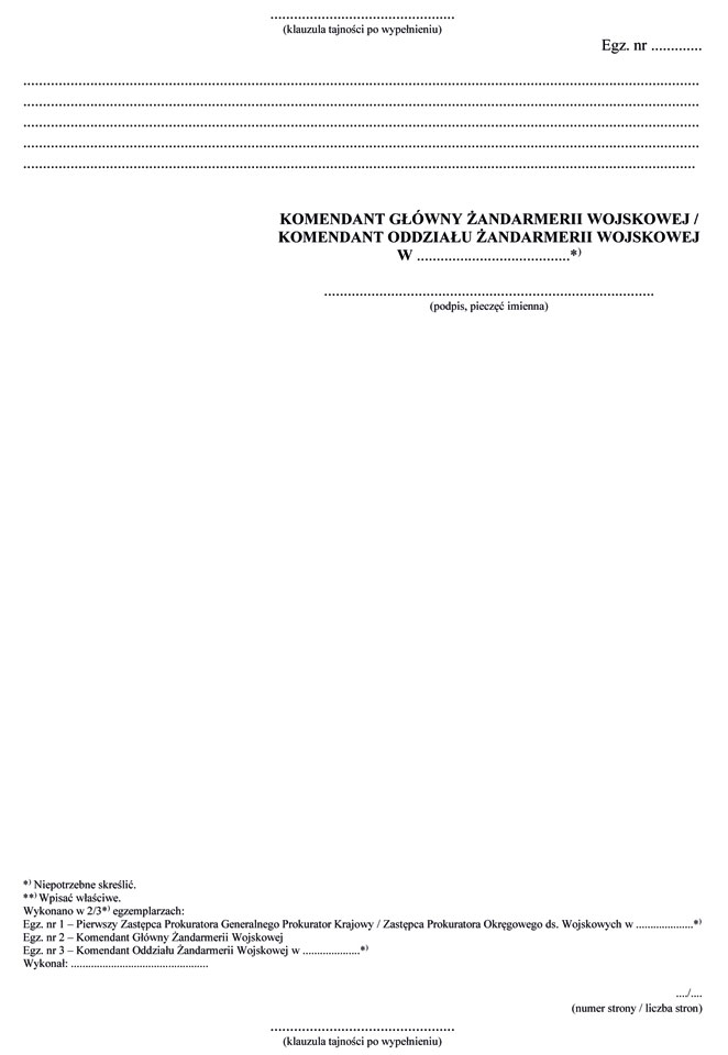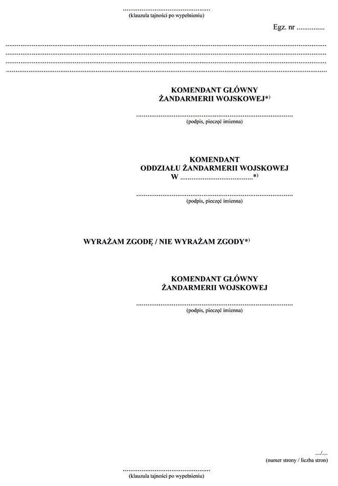 WZÓR - WNIOSEK KOMENDANTA GŁÓWNEGO ŻANDARMERII WOJSKOWEJ / KOMENDANTA ODDZIAŁU ŻANDARMERII WOJSKOWEJ
