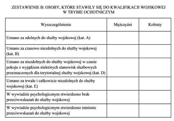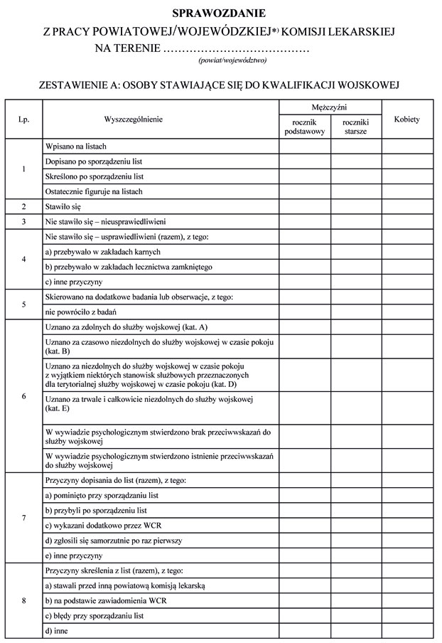 2. Przewodniczący wojewódzkiej komisji lekarskiej sporządza zbiorcze sprawozdanie z kwalifikacji wojskowej przeprowadzonej na terenie województwa i przesyła je Ministrowi Obrony Narodowej za pośrednictwem Szefa Centralnego Wojskowego Centrum Rekrutacji w terminie do 30 dni od dnia zakończenia kwalifikacji wojskowej na terenie województwa.