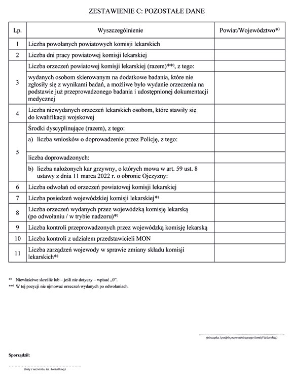 3) liczbę osób przewidzianych do stawienia się przed powiatową komisją lekarską;
