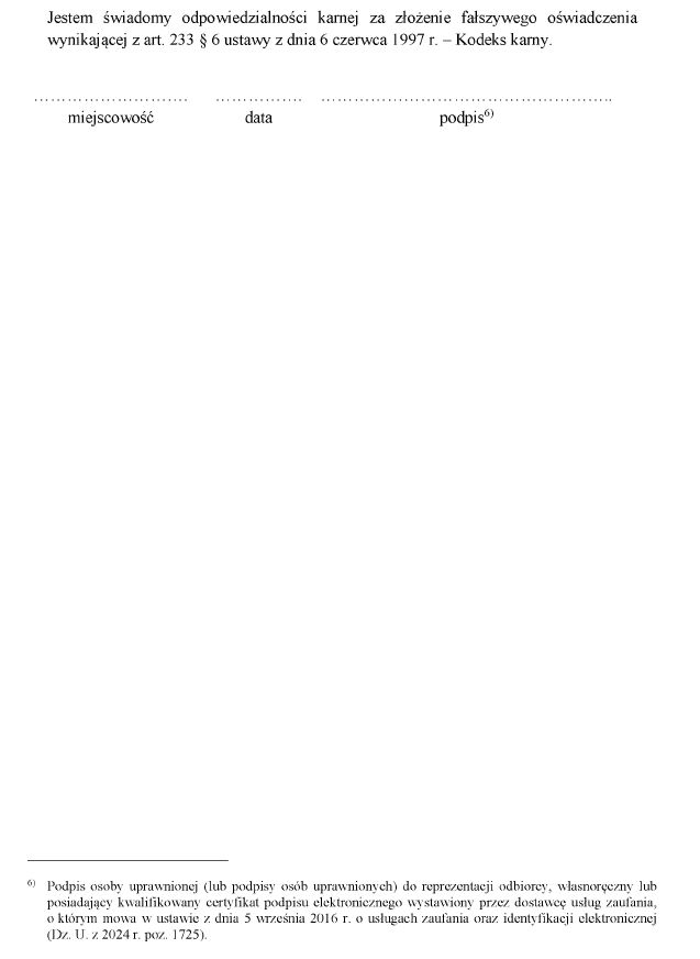 WZÓR - OŚWIADCZENIE ODBIORCY PALIW GAZOWYCH O PRZEZNACZENIU PALIWA GAZOWEGO