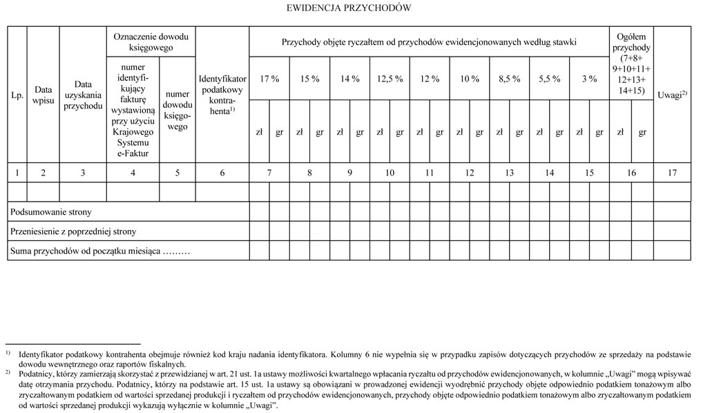 WZÓR - EWIDENCJA PRZYCHODÓW