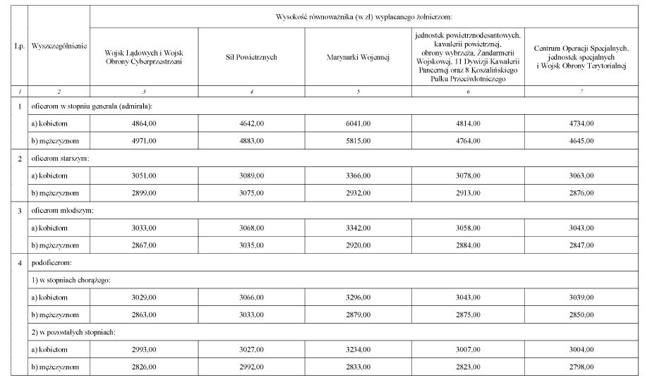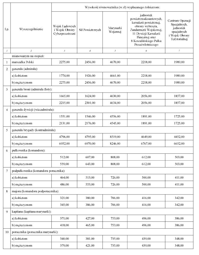 WYSOKOŚĆ RÓWNOWAŻNIKA DLA ŻOŁNIERZY MIANOWANYCH NA WYŻSZY STOPIEŃ WOJSKOWY