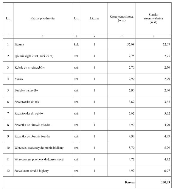 WYSOKOŚĆ RÓWNOWAŻNIKA DLA ŻOŁNIERZA ZAWODOWEGO STUDENTA W AKADEMII, SZKOLE I UCZELNI WOJSKOWEJ ZA PRZYBORY DO UTRZYMANIA HIGIENY OSOBISTEJ ORAZ KONSERWACJI OBUWIA