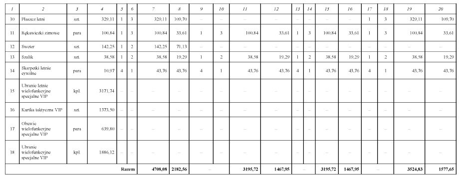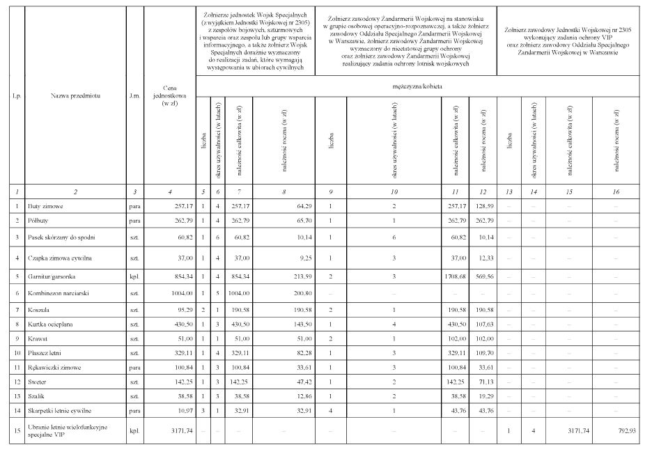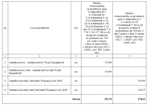 WYSOKOŚĆ RÓWNOWAŻNIKA W ZAMIAN ZA PRZEDMIOTY UMUNDUROWANIA I WYEKWIPOWANIA POLOWEGO I ĆWICZEBNEGO NIEWYDANE W NATURZE