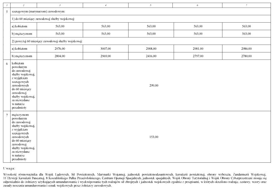 2. Równoważniki zmniejsza się o wartość przedmiotów umundurowania i wyekwipowania wydanych w naturze.