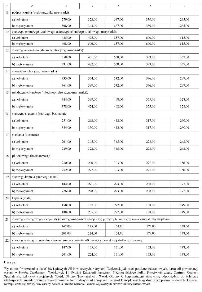 WYSOKOŚĆ RÓWNOWAŻNIKA PRZYSŁUGUJĄCEGO W ZAMIAN ZA UMUNDUROWANIE I WYEKWIPOWANIE NIEWYDANE W NATURZE, W TYM ZA CZYSZCZENIE UMUNDUROWANIA I WYEKWIPOWANIA