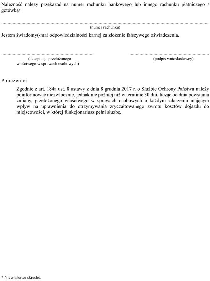 w sprawie wniosku o wypłatę zryczałtowanego zwrotu kosztów dojazdu do miejscowości, w której funkcjonariusz Służby Ochrony Państwa pełni służbę