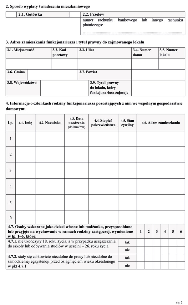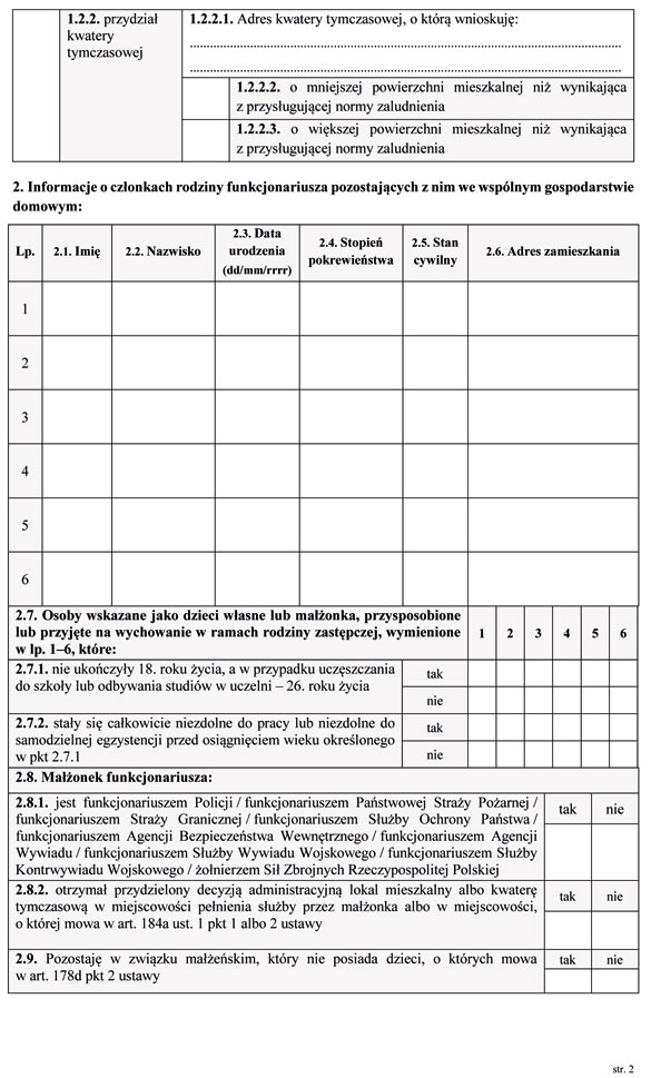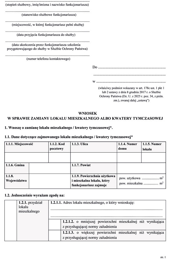 2) wzór wniosku w sprawie zamiany lokalu mieszkalnego albo kwatery tymczasowej, o którym mowa w art. 178a ust. 8 ustawy;