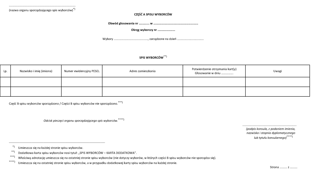 § 2. [Spis wyborców] 1. Konsul sporządza dla właściwych wyborów część A oraz część B spisu wyborców zgodnie z wzorami określonymi odpowiednio w załącznikach nr 1 i 2 do rozporządzenia.
