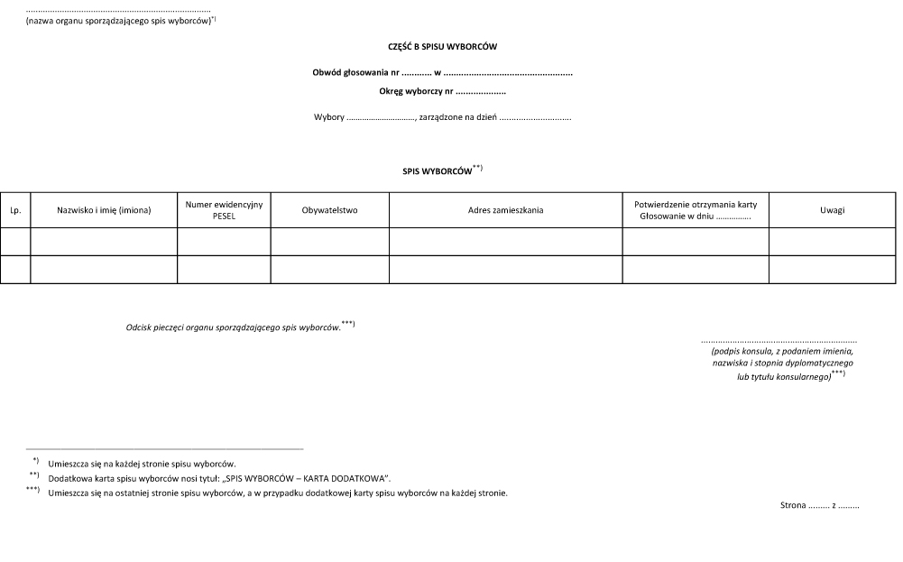 WZÓR - CZĘŚĆ B SPISU WYBORCÓW