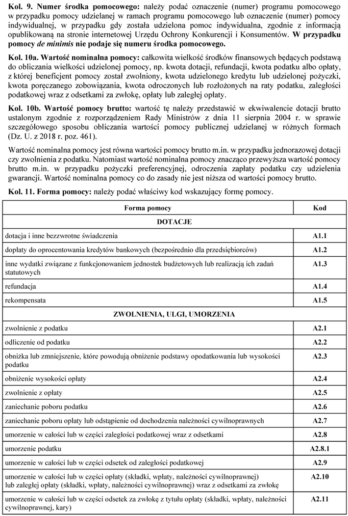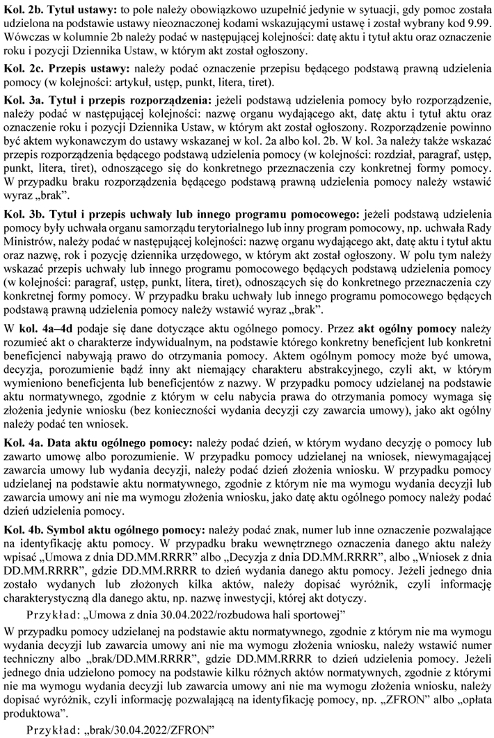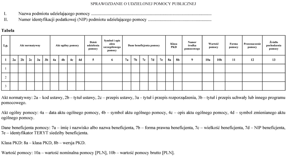 WZÓR - SPRAWOZDANIE O UDZIELONEJ POMOCY PUBLICZNEJ