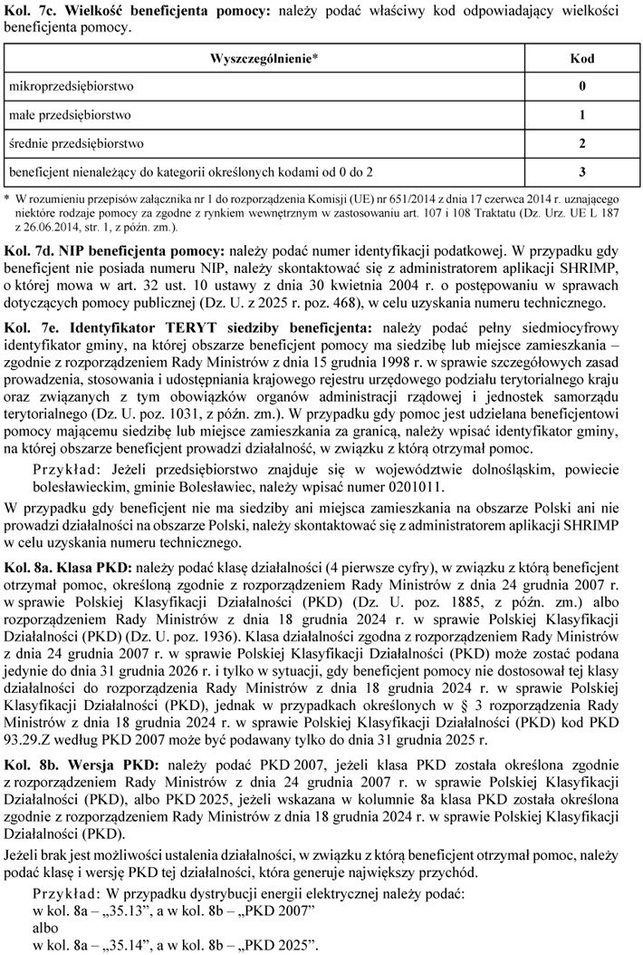 § 3.[Obowiązek podania klasy działalności w sprawozdaniach o udzielonej pomocy publicznej oraz przepisy przejściowe dotyczące kodu Polskiej Klasyfikacji Działalności] Od dnia wejścia w życie niniejszego rozporządzenia do dnia 31 grudnia 2026 r. podmiot udzielający pomocy w sprawozdaniach o udzielonej pomocy publicznej podaje klasę działalności, w związku z którą beneficjent pomocy otrzymał pomoc, zgodnie z rozporządzeniem Rady Ministrów z dnia 24 grudnia 2007 r. w sprawie Polskiej Klasyfikacji Działalności (PKD) (Dz. U. poz. 1885, z 2009 r. poz. 489, z 2017 r. poz. 2440 oraz z 2020 r. poz. 1249), jeżeli beneficjent pomocy nie dostosował tej klasy działalności do rozporządzenia Rady Ministrów z dnia 18 grudnia 2024 r. w sprawie Polskiej Klasyfikacji Działalności (PKD) (Dz. U. poz. 1936), z tym że w przypadkach określonych w § 3 rozporządzenia Rady Ministrów z dnia 18 grudnia 2024 r. w sprawie Polskiej Klasyfikacji Działalności (PKD) do dnia 31 grudnia 2025 r. może być podawany kod PKD 93.29.Z według PKD 2007.