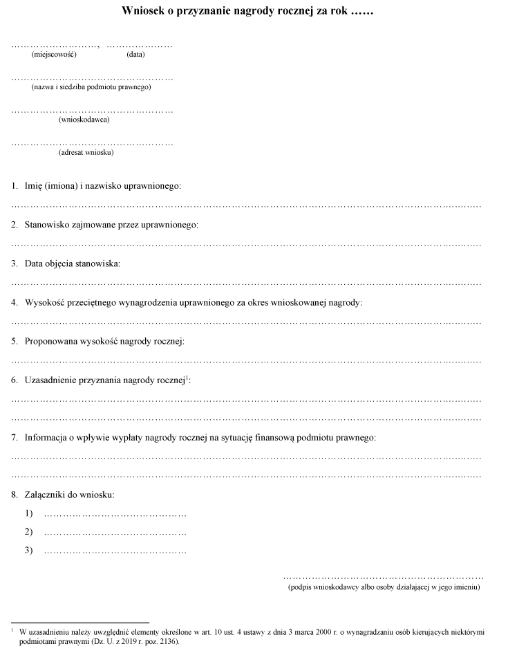 4. Wzór wniosku o przyznanie nagrody rocznej jest określony w załączniku do rozporządzenia.