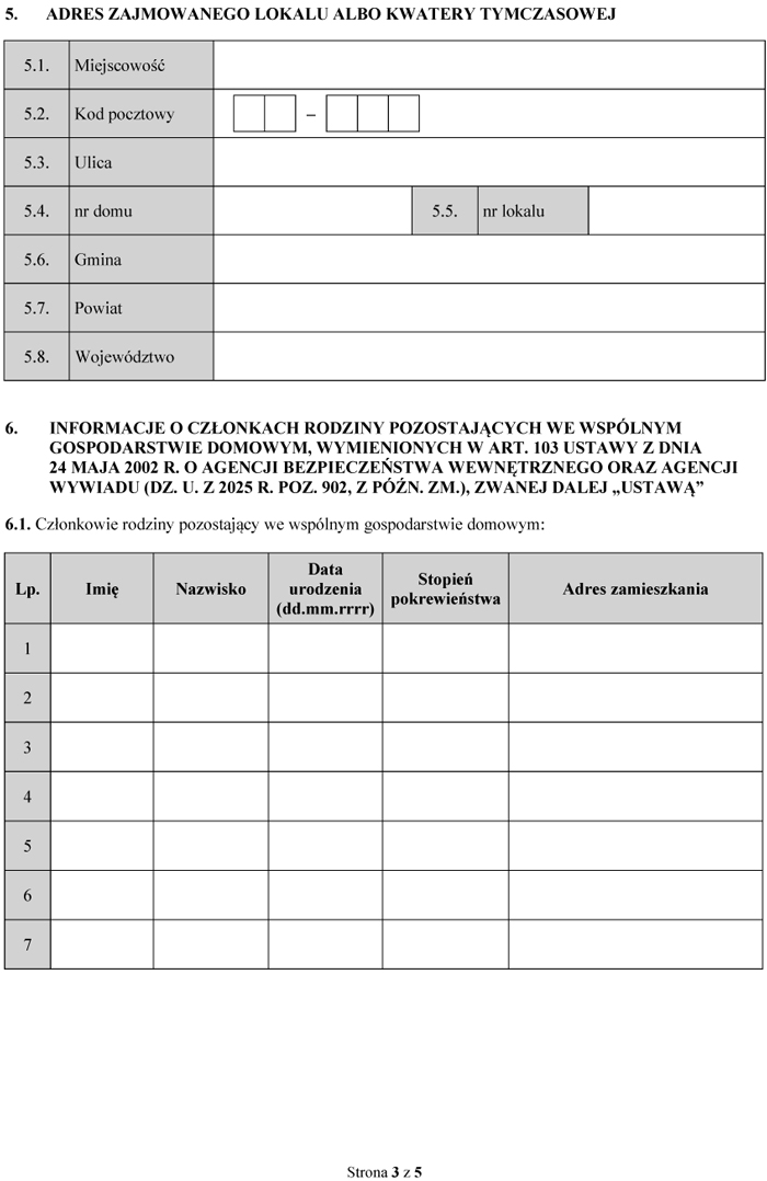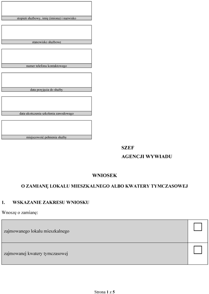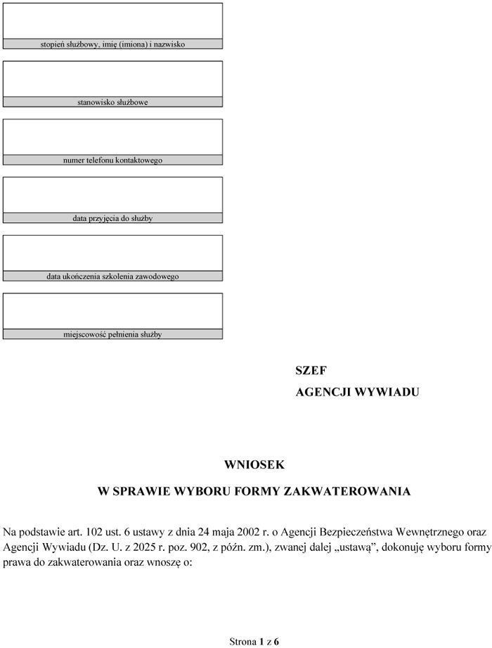 w sprawie wzoru wniosku w sprawie wyboru formy zakwaterowania i wniosku o zamianę lokalu mieszkalnego albo kwatery tymczasowej stosowanych w Agencji Wywiadu oraz formy i sposobu składania tych wniosków