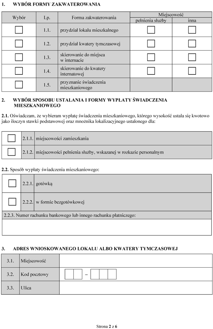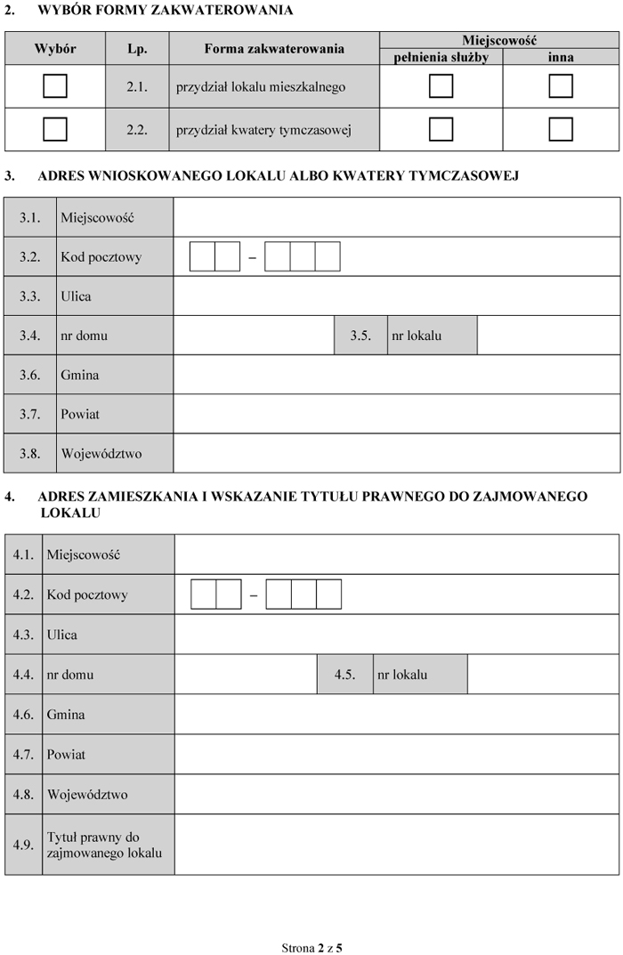 § 2. Wzór wniosku o zamianę lokalu mieszkalnego albo kwatery tymczasowej jest określony w załączniku nr 2 do rozporządzenia.