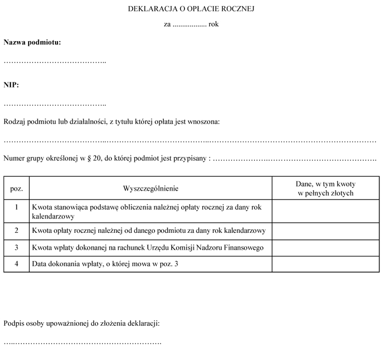 WZÓR - DEKLARACJA O OPŁACIE ROCZNEJ