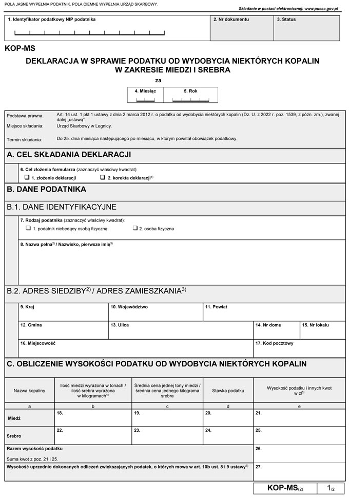 zmieniające rozporządzenie w sprawie wzorów deklaracji w sprawie podatku od wydobycia niektórych kopalin