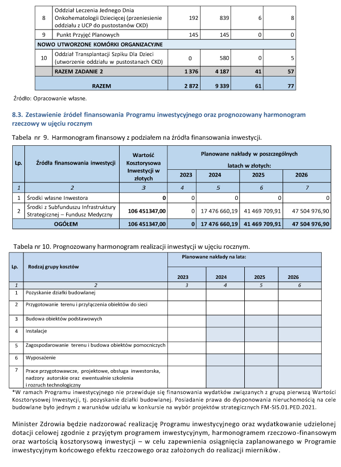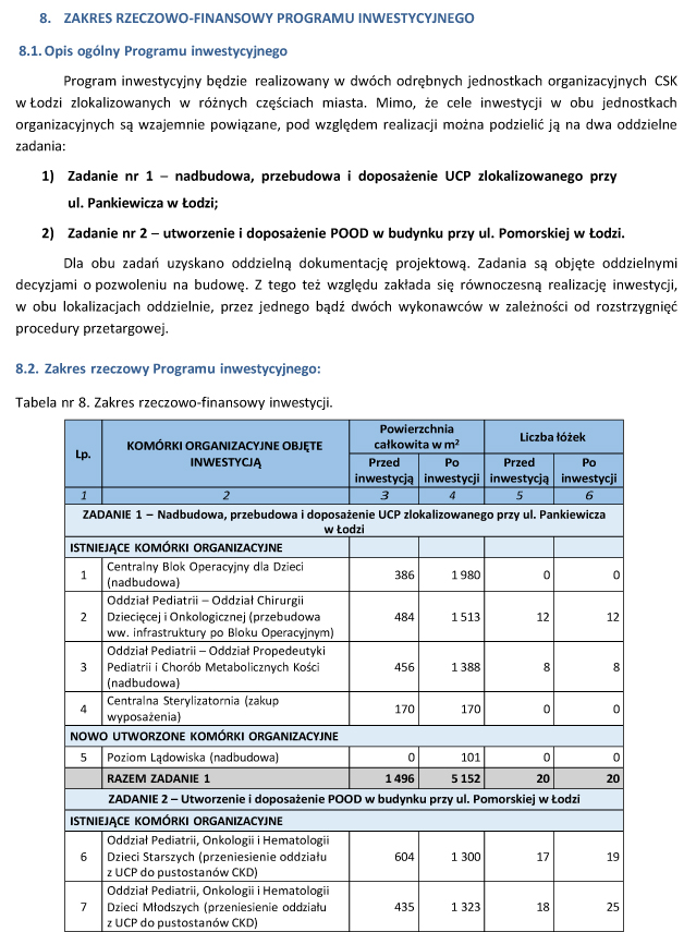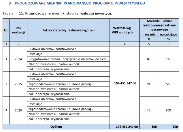 ZAKRES RZECZOWO-FINANSOWY PROGRAMU INWESTYCYJNEGO