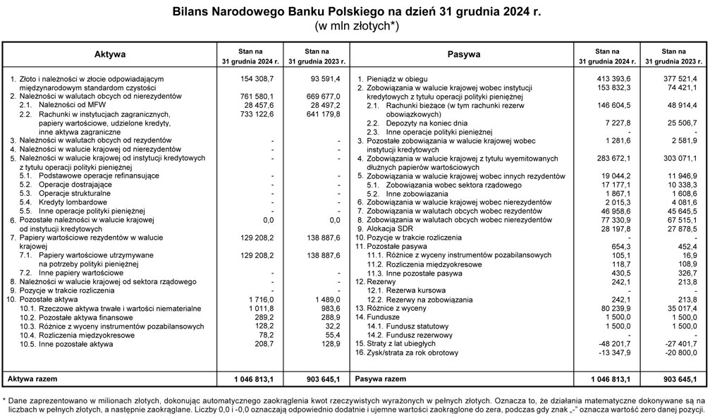Bilans Narodowego Banku Polskiego na dzień 31 grudnia 2024 r.