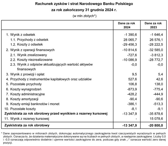 2) rachunek zysków i strat Narodowego Banku Polskiego za rok zakończony 31 grudnia 2024 r., stanowiący załącznik nr 2 do obwieszczenia.
