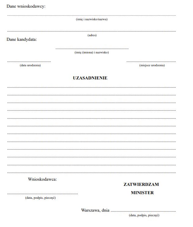 WZÓR WNIOSKU O NADANIE ODZNAKI OKOLICZNOŚCIOWEJ „ODZNAKA ZA WYRÓŻNIAJĄCĄ PRACĘ NA RZECZ SĄDU”