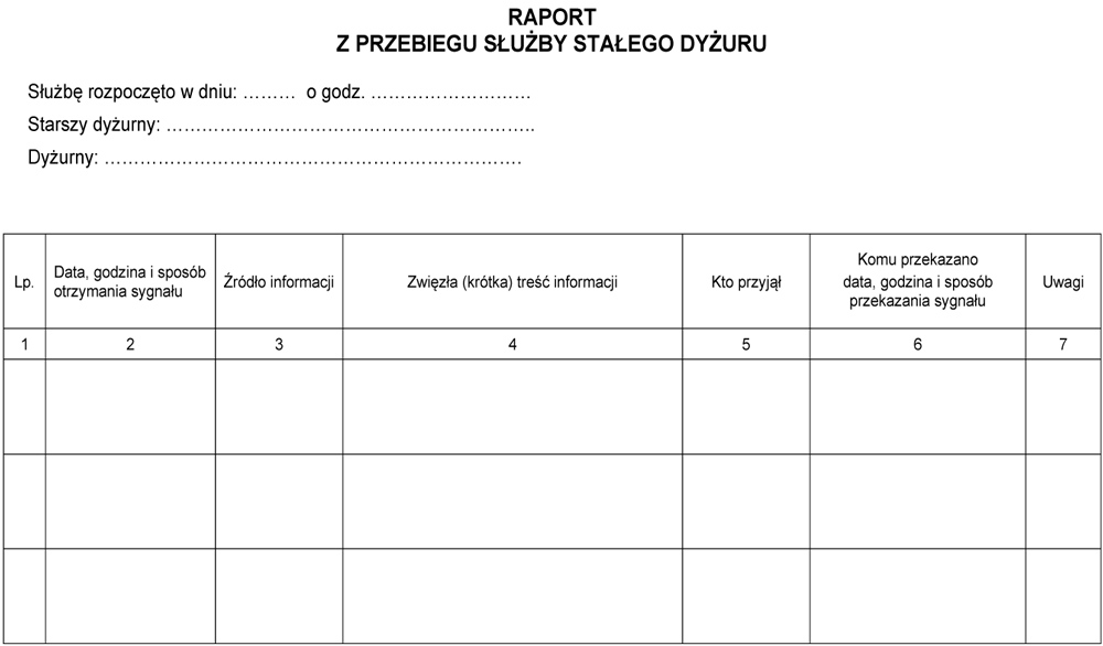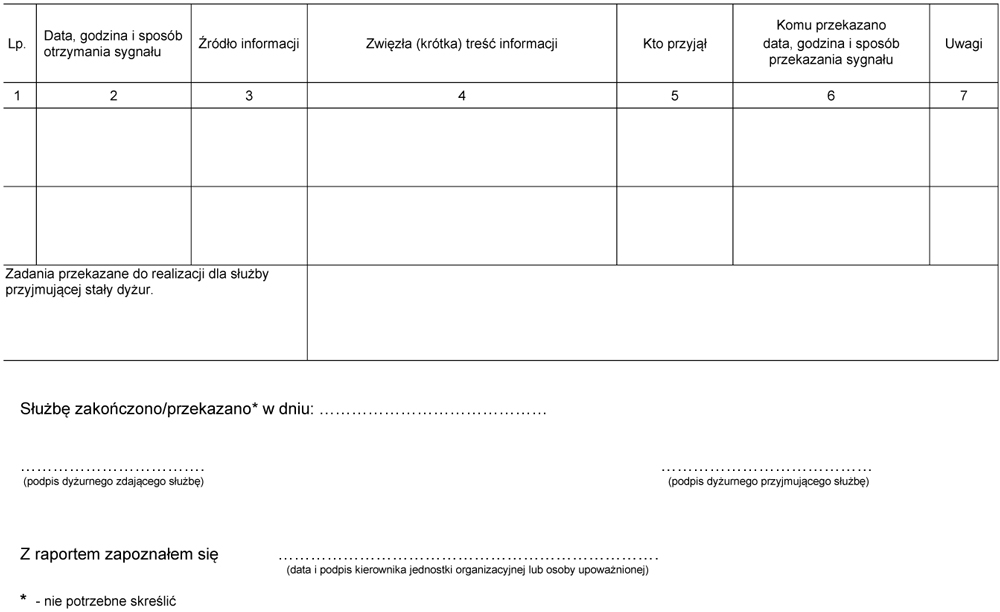 2) dziennik działania stałego dyżuru, którego wzór określa załącznik nr 3.