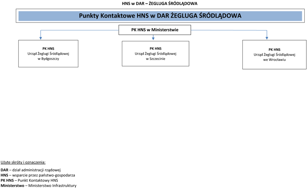 § 1. W celu realizacji zadań wynikających z obowiązku wsparcia przez państwo-gospodarza, zwanego dalej „HNS”, w działach administracji rządowej gospodarka morska, gospodarka wodna, transport oraz żegluga śródlądowa wyznacza się Punkty Kontaktowe HNS, zwane dalej „PK HNS”, zgodnie ze schematem określonym w załączniku do zarządzenia.