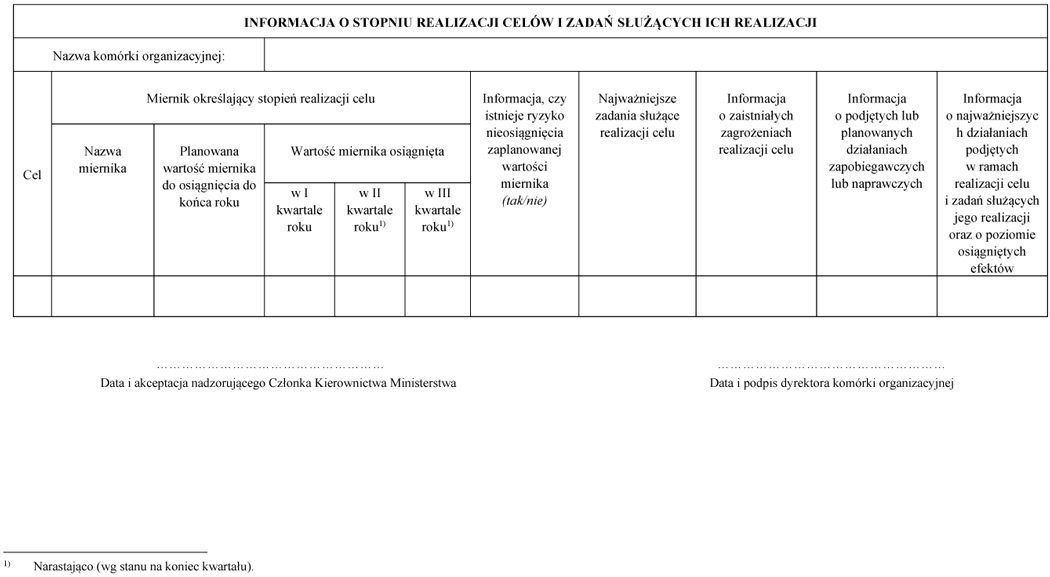 WZÓR - INFORMACJA O STOPNIU REALIZACJI CELÓW I ZADAŃ SŁUŻĄCYCH ICH REALIZACJI