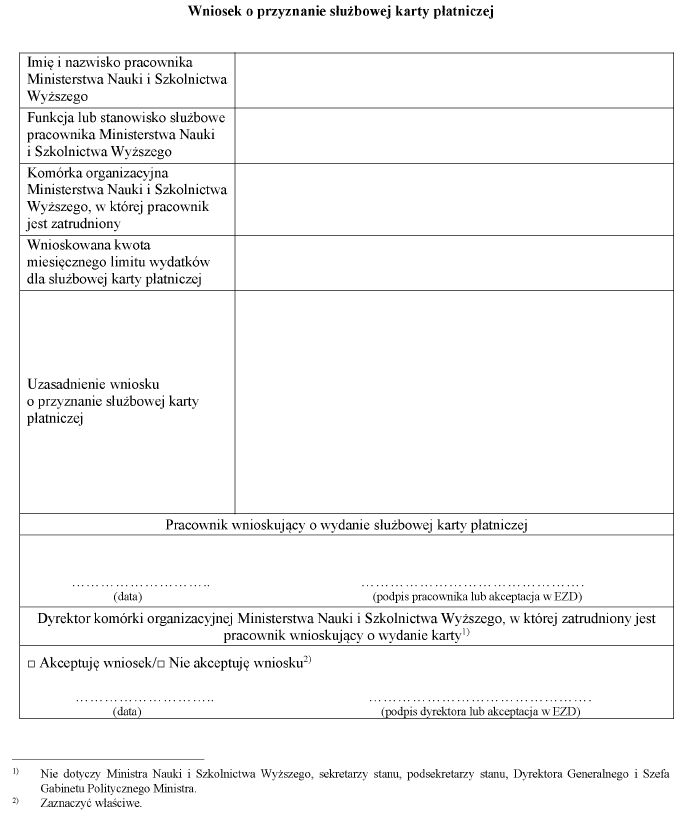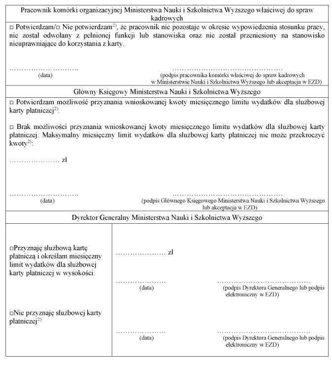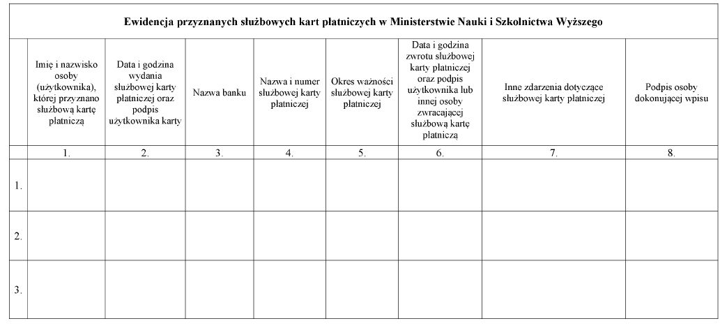 WZÓR - EWIDENCJA PRZYZNANYCH SŁUŻBOWYCH KART PŁATNICZYCH W MINISTERSTWIE NAUKI I SZKOLNICTWA WYŻSZEGO
