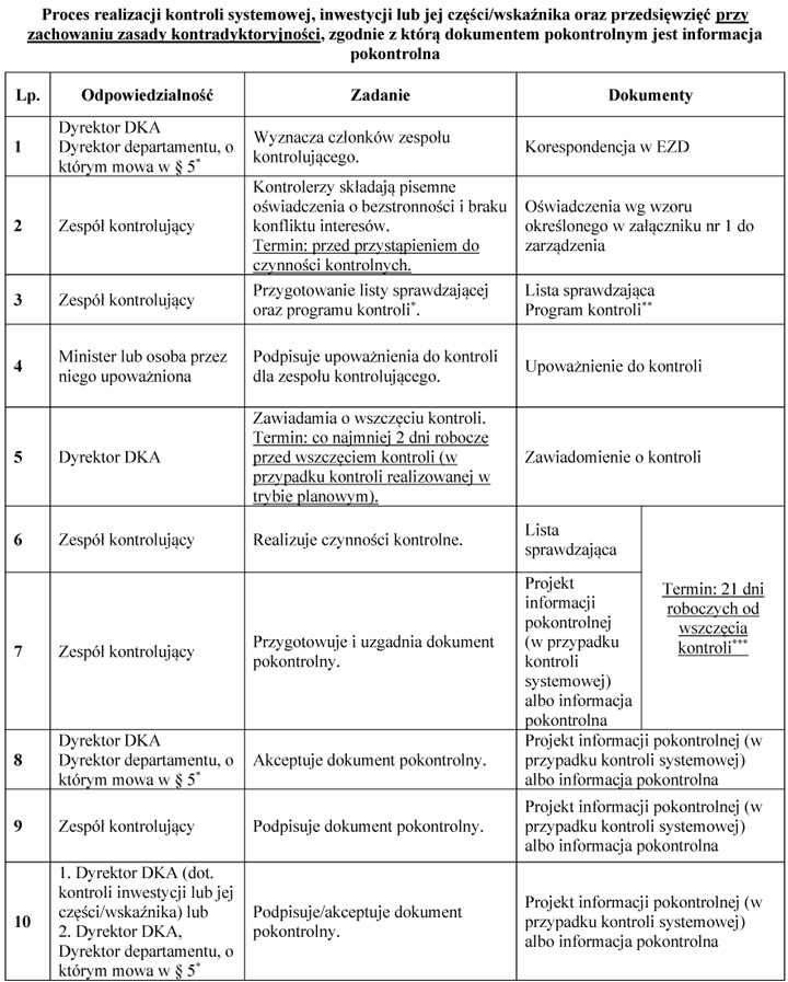 PROCES REALIZACJI KONTROLI SYSTEMOWEJ, INWESTYCJI LUB JEJ CZĘŚCI/WSKAŹNIKA ORAZ PRZEDSIĘWZIĘĆ PRZY ZACHOWANIU ZASADY KONTRADYKTORYJNOŚCI, ZGODNIE Z KTÓRĄ DOKUMENTEM POKONTROLNYM JEST INFORMACJA POKONTROLNA