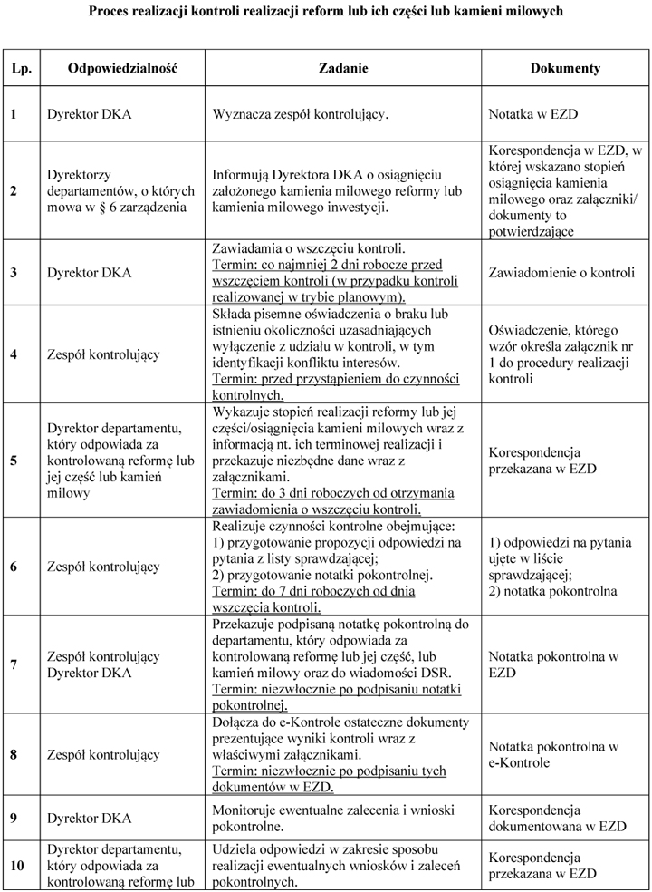 PROCES REALIZACJI KONTROLI REALIZACJI REFORM LUB ICH CZĘŚCI LUB KAMIENI MILOWYCH