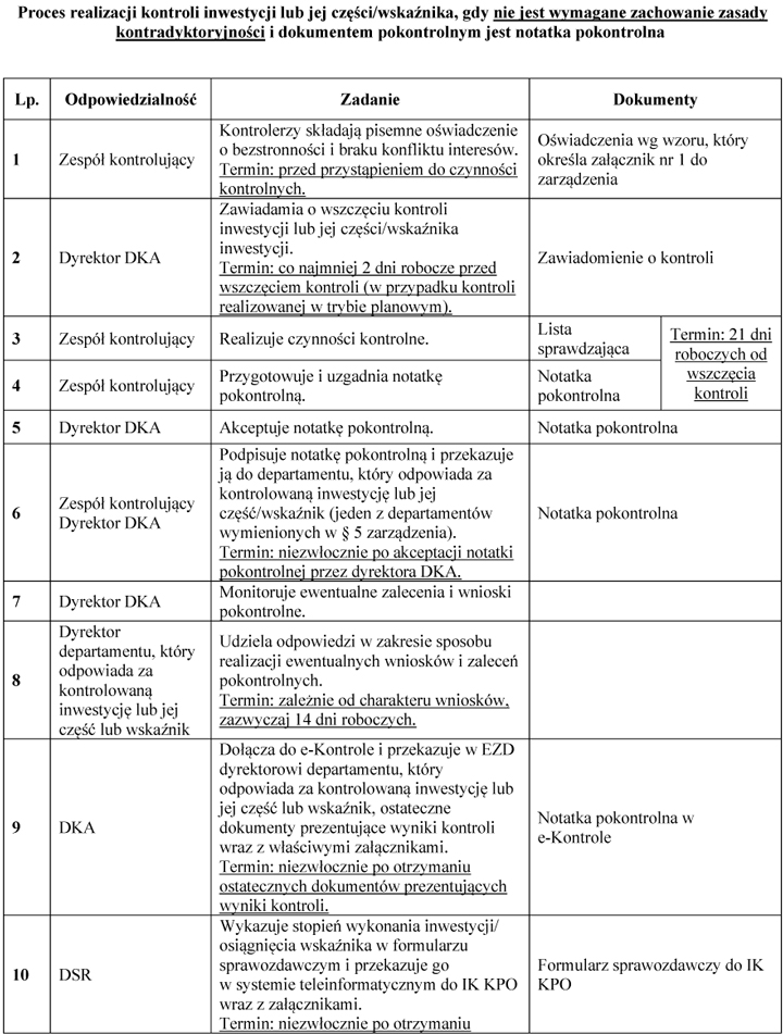 PROCES REALIZACJI KONTROLI INWESTYCJI LUB JEJ CZĘŚCI/WSKAŹNIKA, GDY NIE JEST WYMAGANE ZACHOWANIE ZASADY KONTRADYKTORYJNOŚCI I DOKUMENTEM POKONTROLNYM JEST NOTATKA POKONTROLNA