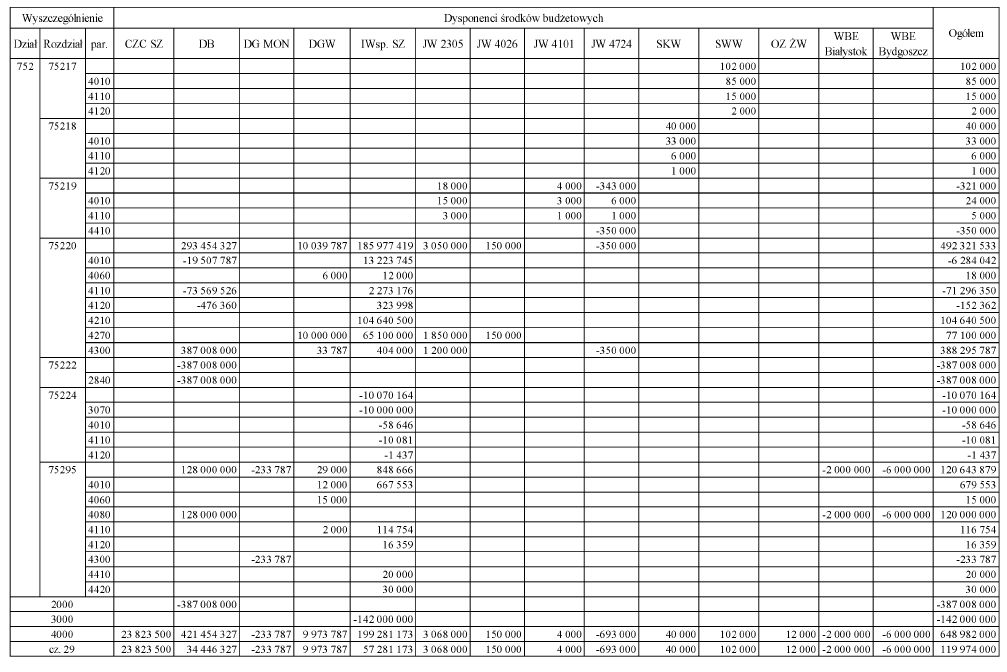 § 1. W decyzji budżetowej na rok 2025 Nr 10/MON Ministra Obrony Narodowej z dnia 23 stycznia 2025 r. (Dz. Urz. Min. Obr. Nar. poz. 11, 25, 41, 49, 60 i 75) w załączniku nr 2 „Zestawienie wydatków budżetu na 2025 r. oraz ich podział na dysponentów środków budżetowych według działów, rozdziałów i paragrafów klasyfikacji budżetowej” ulegają zmianie wydatki o kwoty określone w załączniku do niniejszej decyzji.