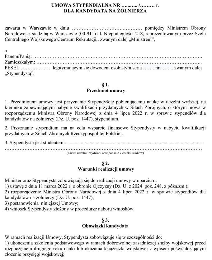 zmieniająca decyzję w sprawie stypendiów dla kandydatów na żołnierzy