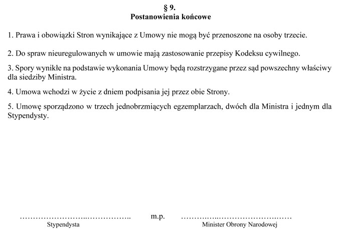 WZÓR UMOWY O PRZYZNANIU STYPENDIUM