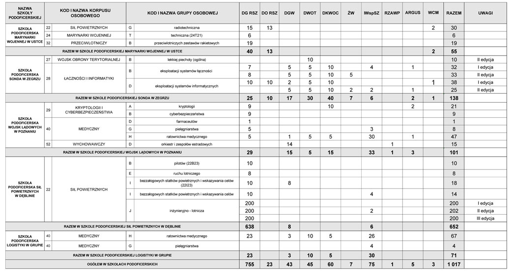 § 3. 1. Limit miejsc do szkół podoficerskich wynosi 1017.