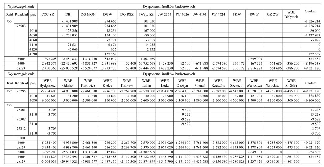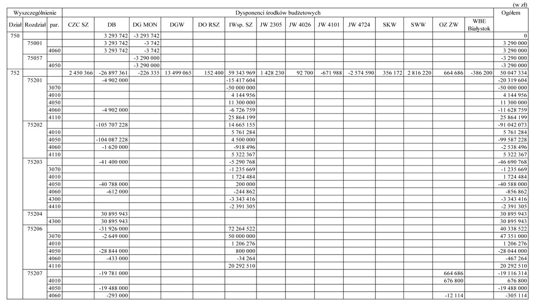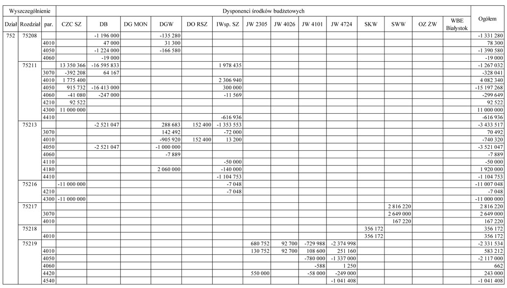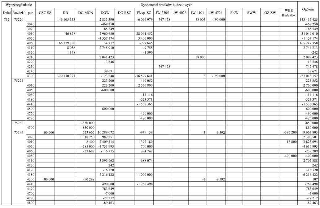§ 1. W decyzji budżetowej na rok 2025 Nr 10/MON Ministra Obrony Narodowej z dnia 23 stycznia 2025 r. (Dz. Urz. Min. Obr. Nar. poz. 11, z późn. zm.1)) w załączniku nr 2 „Zestawienie wydatków budżetu na 2025 r. oraz ich podział na dysponentów środków budżetowych według działów, rozdziałów i paragrafów klasyfikacji budżetowej” ulegają zmianie wydatki o kwoty określone w załączniku do niniejszej decyzji.