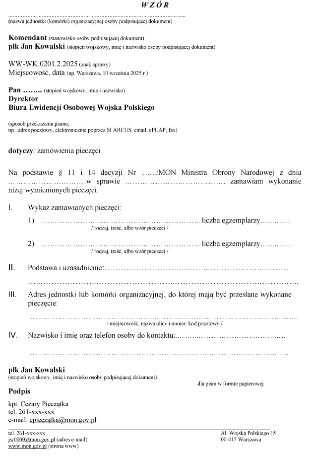 WZÓR - ZAMÓWIENIE WYKONANIA PIECZĘCI