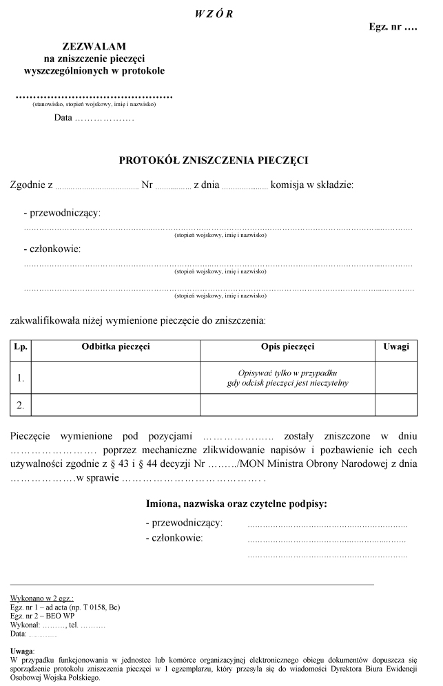 WZÓR - PROTOKÓŁ ZNISZCZENIA PIECZĘCI