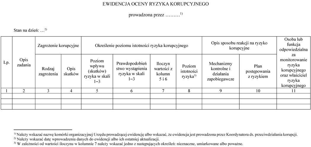 § 13. 1. Ewidencja oceny ryzyka korupcyjnego zawiera następujące informacje: