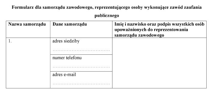 2) zgłoszenia samorządu zawodowego, reprezentującego osoby wykonujące zawód zaufania publicznego.