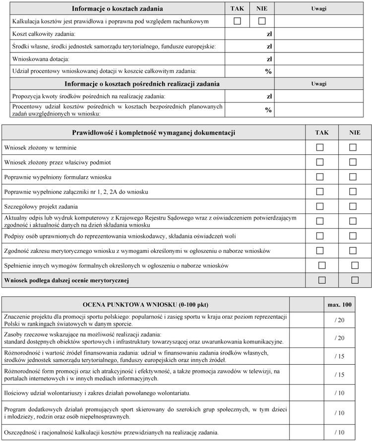 2. Maksymalna suma punktów możliwych do uzyskania przez wniosek wynosi 100.