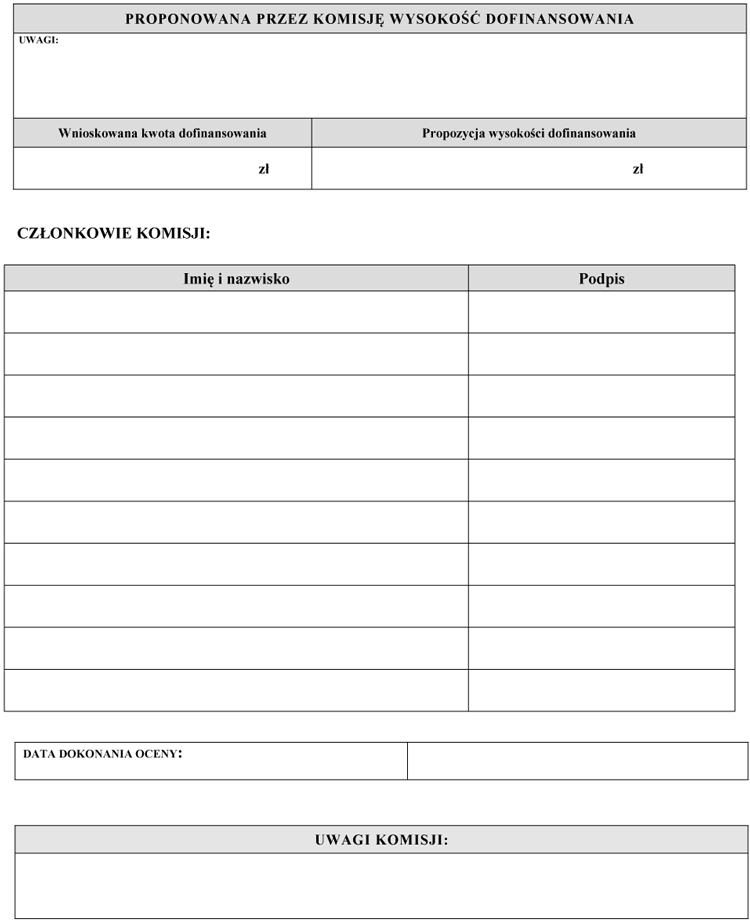 4. Propozycja dofinansowania zadań, o której mowa w ust. 2, przygotowywana jest przez Komisję w oparciu o pozytywną ocenę wniosku pod względem formalnym i merytorycznym, zawartą w protokole oceny wniosku sporządzonym podczas posiedzenia Komisji. Wzór protokołu oceny wniosku określa załącznik nr 1 do zarządzenia.