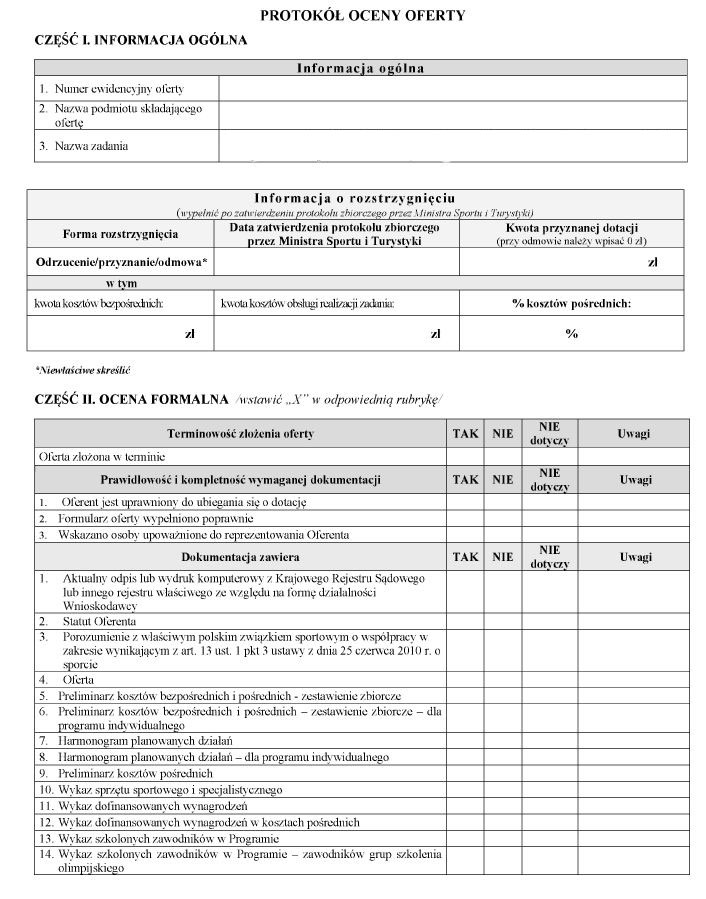 PROTOKÓŁ OCENY OFERTY, WNIOSKU LUB WYSTĄPIENIA O DODATKOWE DOFINANSOWANIE