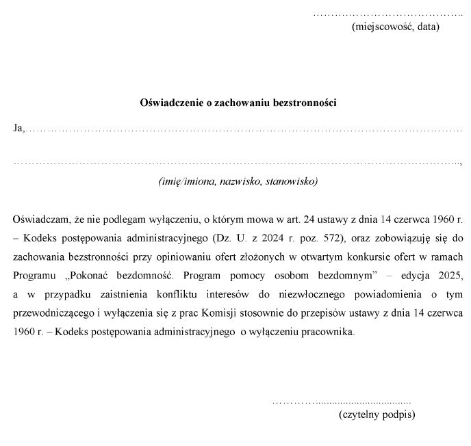 WZÓR - OŚWIADCZENIE O ZACHOWANIU BEZSTRONNOŚCI