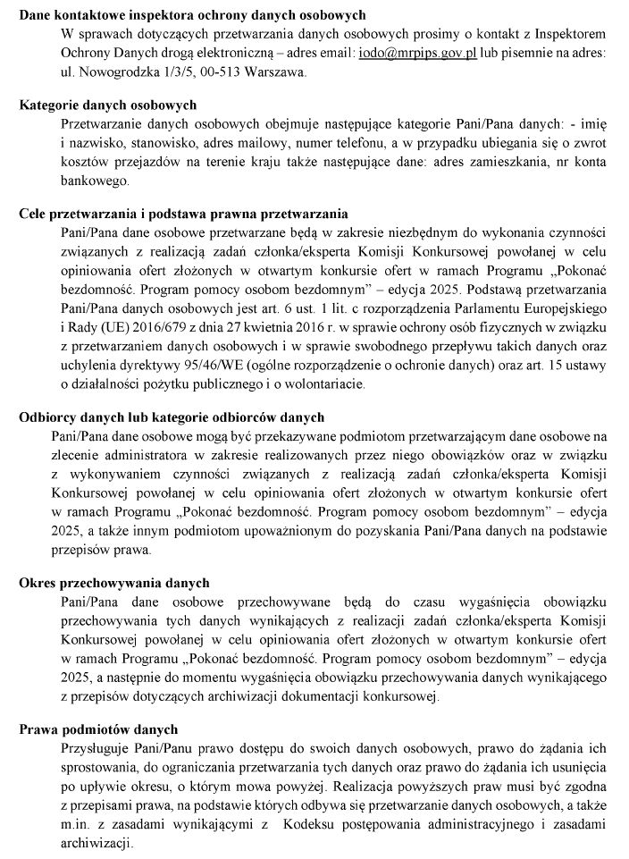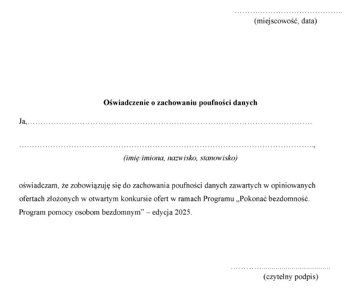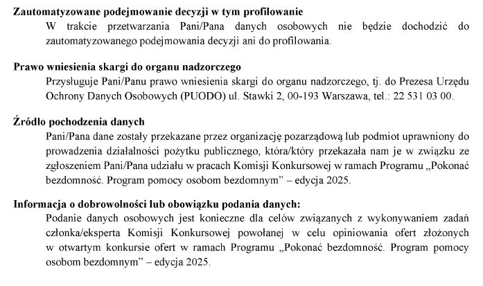 1) analiza i ocena złożonych ofert w oparciu o kryteria, o których mowa w ogłoszeniu o otwartym konkursie ofert w ramach Programu „Pokonać bezdomność. Program pomocy osobom bezdomnym” - edycja 2025;