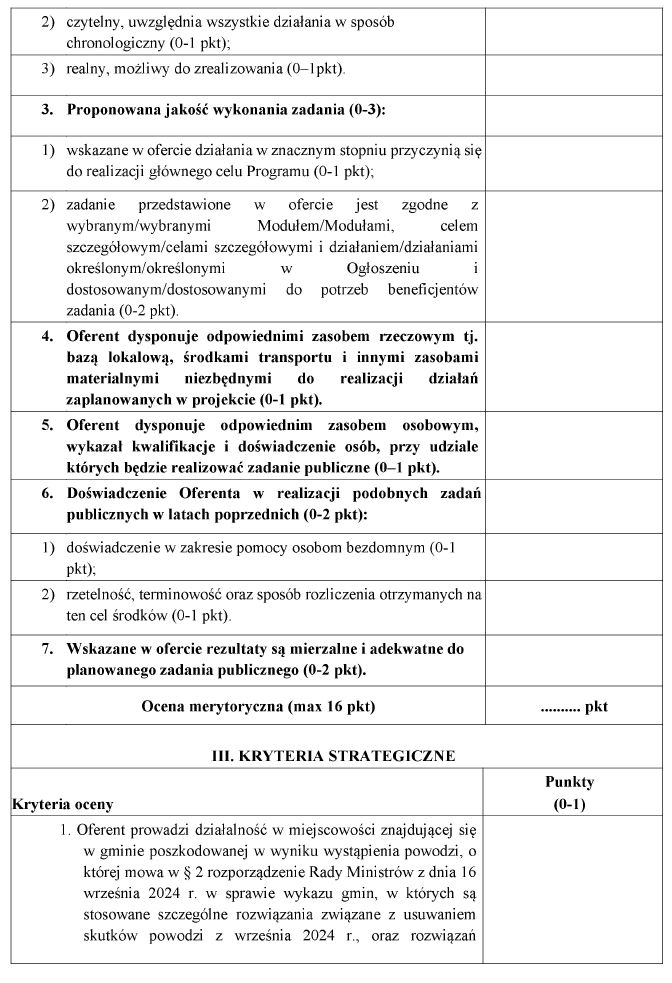 § 2. 1. Analiza i ocena złożonych ofert odbywa się na podstawie kryteriów określonych w ogłoszeniu o otwartym konkursie ofert w ramach Programu „Pokonać bezdomność. Program pomocy osobom bezdomnym” - edycja 2025.