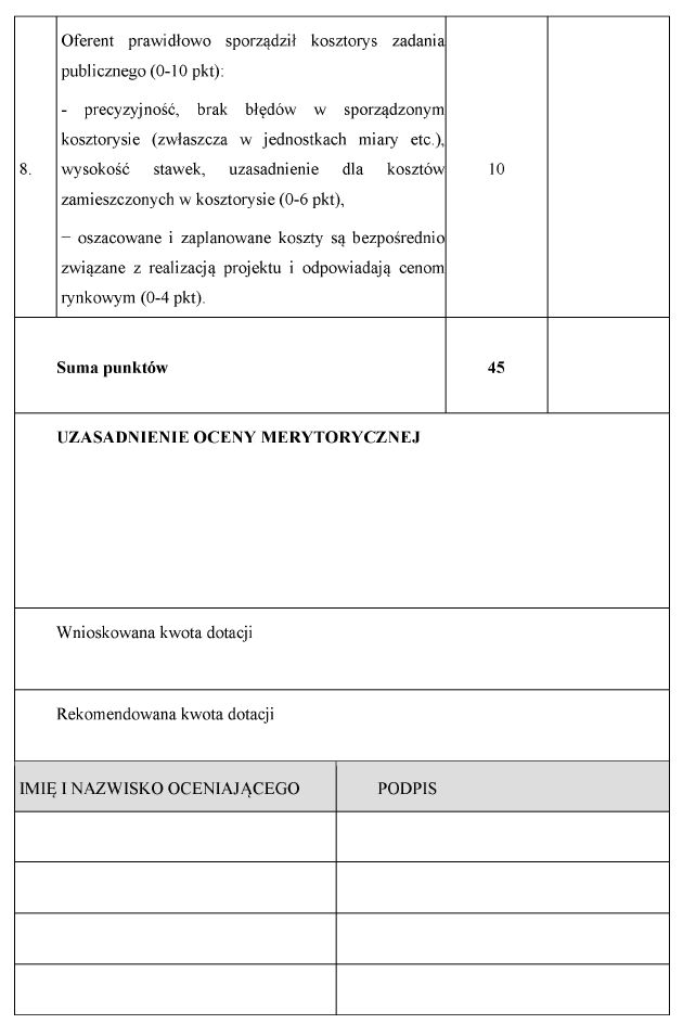 f) uśrednioną liczbę punktów uzyskanych w wyniku oceny członków Komisji - dla ofert, które podlegały ocenie merytorycznej;