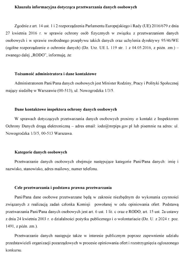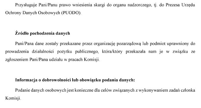 3) zapoznaniu się z klauzulą informacyjną dotyczącą przetwarzania danych osobowych w Ministerstwie.