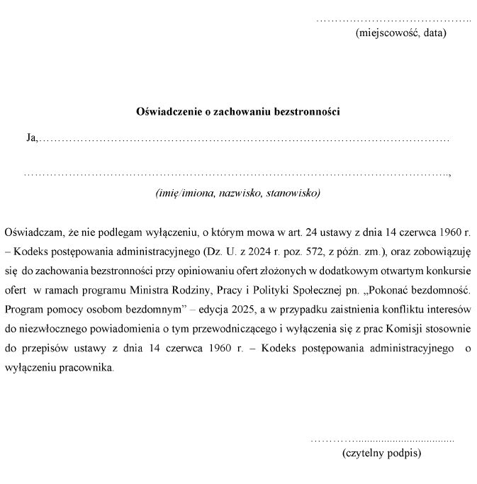 WZÓR - OŚWIADCZENIE O ZACHOWANIU BEZSTRONNOŚCI